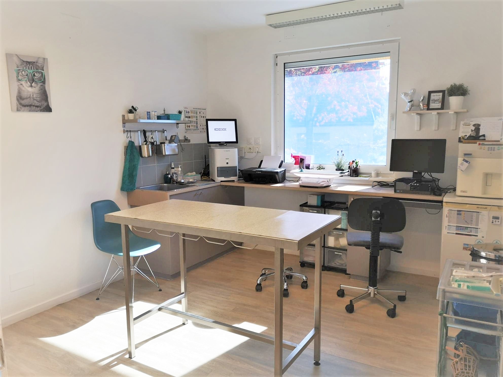 - C’est ici qu’ont lieu les soins dentaires et détartrages. C’est également dans cette salle que les animaux sont préparés avant d’entrer au bloc opératoire.